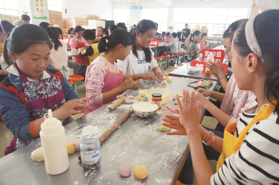 “剪刀,剪刀,快!”“把绿豆给我!”“擀面杖快用,我还要用呢!”你一定很好奇,这是在干什么呢?告诉你吧,在濉溪县实验小学的食堂里,开展了一场充满趣味的花样馒头大赛。看到同学们各种造型奇特的馒头,你是不是对劳动充满了热情呢!