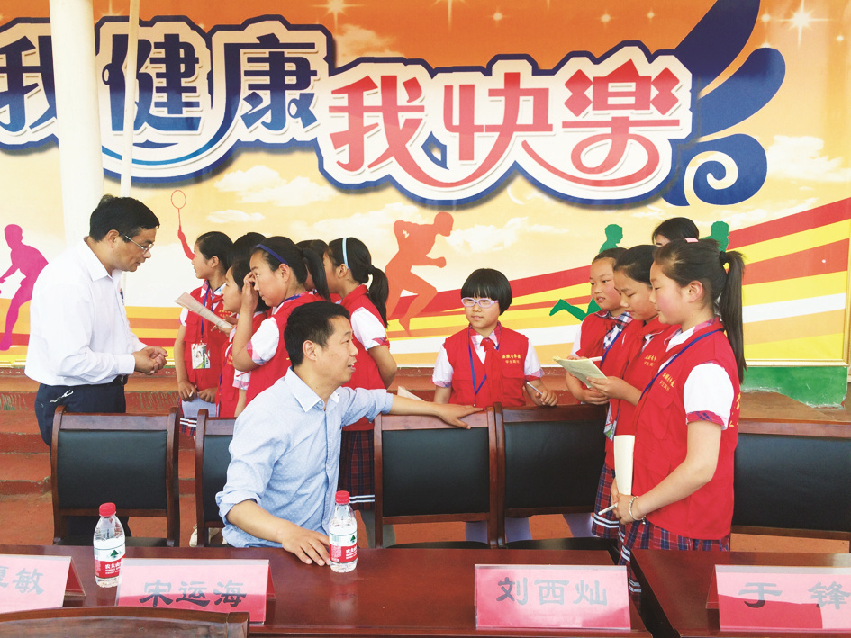 不打无准备之仗。采访现场,小记者们行动迅速,问题连连。先是在开幕式前,采访了县教育局副局长王森阿姨、县青少年活动中心主任陈芳清阿姨;又在活动结束后,先后采访了县体育局局长李岩叔叔、县教育局总督学方迪叔叔、校长陶坤叔叔等。本着“一个不能少”的原则,对于现场来宾和运动员代表们,小记者们可是都没有“放过”。