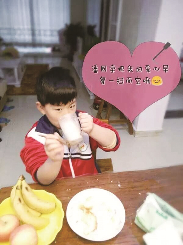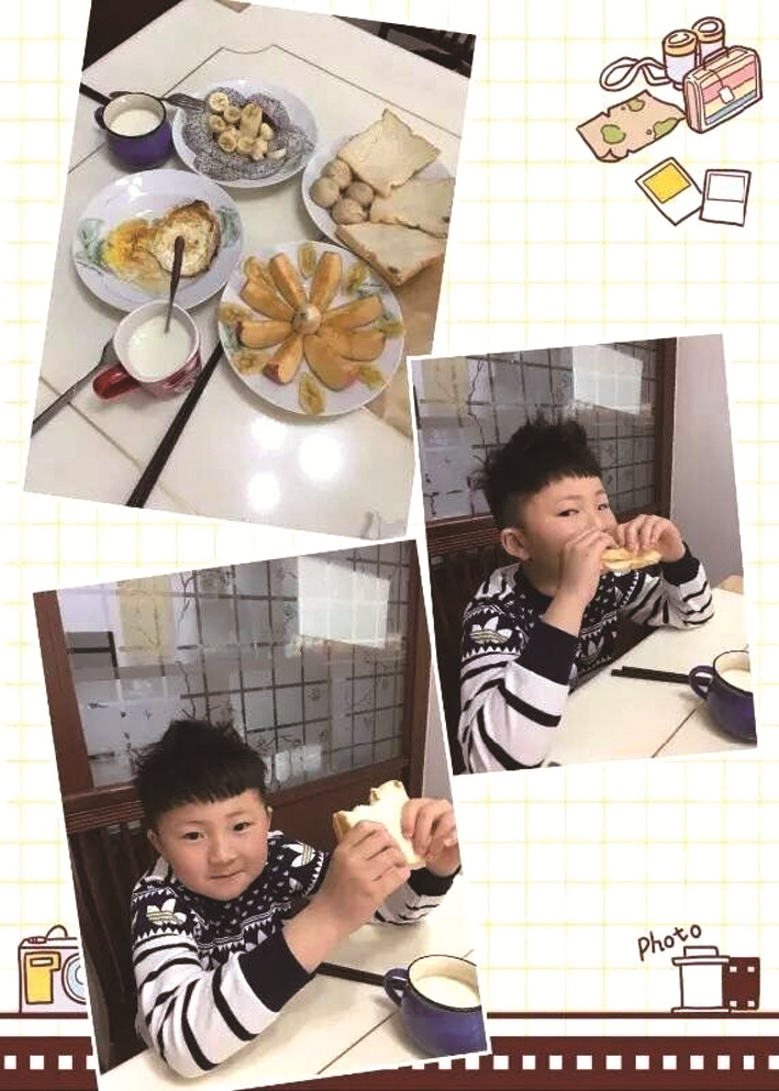 妈妈心语:我是颍上县实验小学一(2)班潘卓麟的妈妈,我一直坚持早上亲自为孩子做早饭,因为这样不仅干净营养,最重要的是享受一家人围坐在餐桌旁的欢乐时光。看着孩子和我们开心地谈天说地的样子,我喜欢这样的温馨时刻。