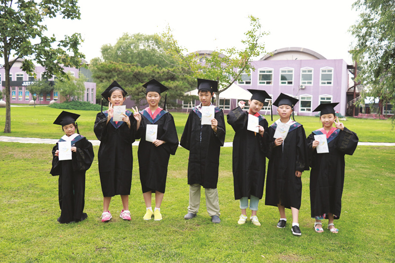 一天的活动从简单却营养的早饭开始。小队员们吃完营地为大家精心准备的早餐后,来到了美丽的北京大学,感受百年老校特有的学术和人文气息。坐在北大的教室里听讲座,走在树影斑驳的小廊上看风景,仿佛自己就是小小的未来北大生!巢湖市东风路小学的王彦希说:“我们还穿上了学士服在校园里合影留念,这在我心中也播下了希望的种子。”
