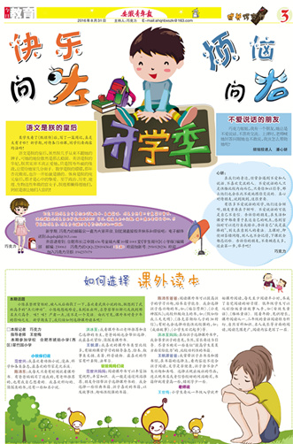 王帆源:我喜欢的课外书类型比较多,有辅助课堂学习的辅导杂志、绘本、叙事类文摘、名著、科普读物。最喜欢的作家有叶圣陶、法布尔。