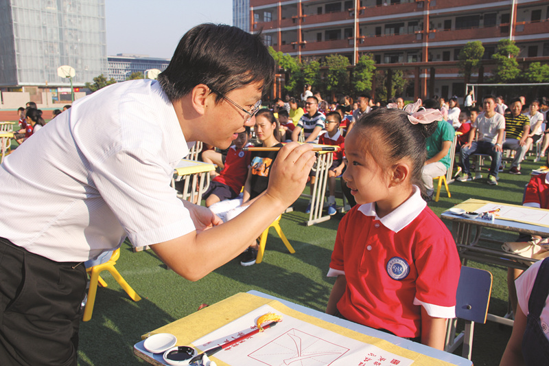 “孩子从来没有参加过这样的活动,很兴奋,在家按照老师发来的视频,练习了很多遍。希望她快快成长,学会做人。”一(5)班邓湫(qiū)荇(xìnɡ)的爸爸对这场活动很是赞成。