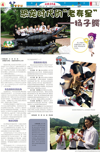 六(2)班 左以纯:到了扬子鳄繁殖中心,我们看到了刚出生的小扬子鳄,样子十分像小蜥蜴,粉粉的,活蹦乱跳,可爱极了!不过你知道扬子鳄前肢五指而后肢只有四指吗?