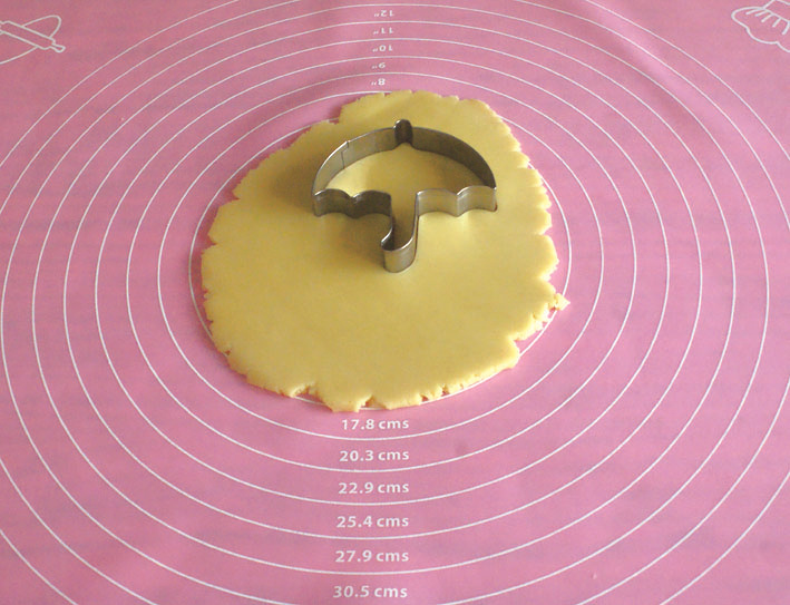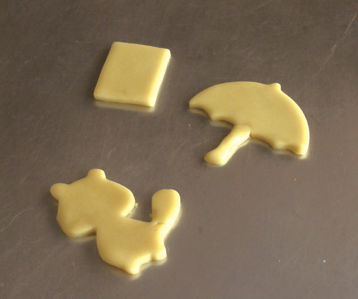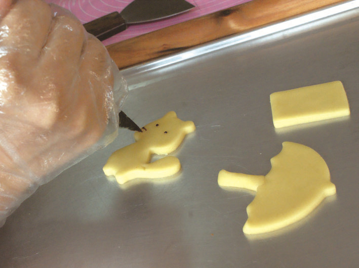 4.取出模具后,用铲子小心地取出饼干模型放进烤盘,这里动作要慢,否则一不小心就会弄坏刻好的模型。