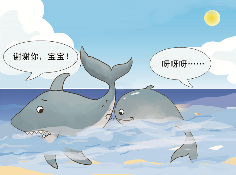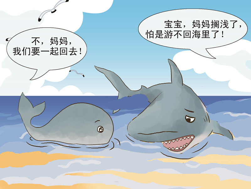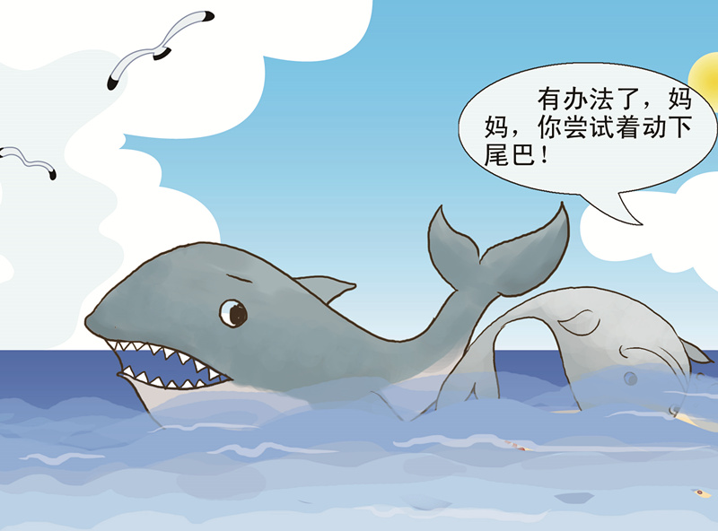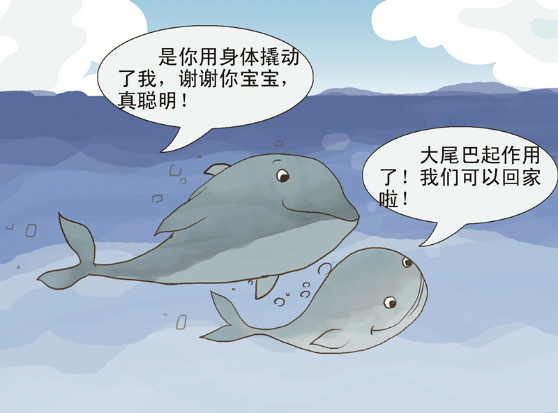 座头鲸宝宝不仅勇敢,还聪明。用自己的身体撬动妈妈,减少了摩擦力,让妈妈的大尾巴重新获得了推动力,真棒!