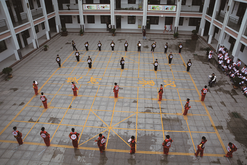 真人棋盘庆祝节日 10月13日,巢湖市团结路小学红旗招展、鲜花簇拥,两栋教学楼之间的象棋天井上演了一场“地为棋盘我为子”的真人战,少先队员与来访嘉宾共度节日,校园里充满欢声笑语。