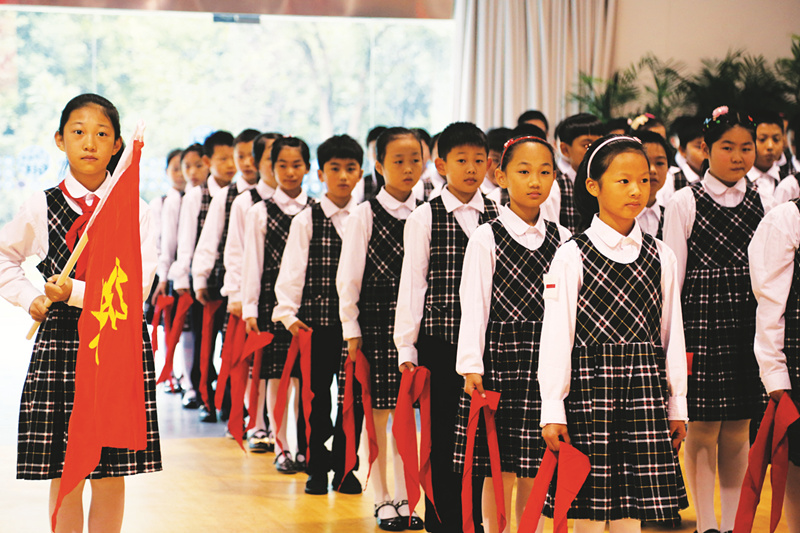 外宾走进来 风采展出去 在这个特殊的日子里,澳大利亚北领地代表团来到合肥师范附小观摩少先队建队节活动暨队风队列展演。一致的步伐,嘹亮的歌声,坚定的呼号,给外宾们留下了深刻的印象。
