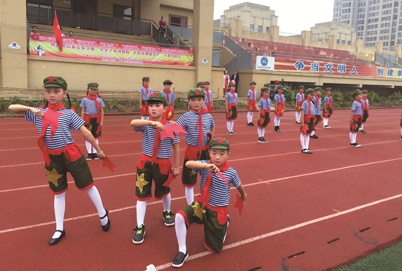 少先队员重温长征路 蚌埠市高新实验学校少先队员以“学长征精神、做红色传人”为主题,真情演绎,重温艰苦卓绝的长征历程。