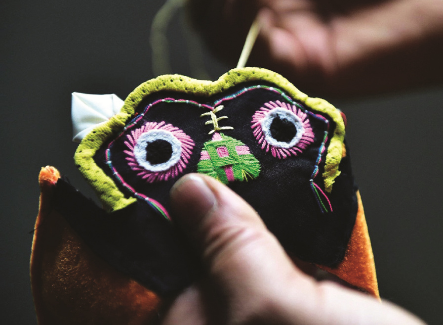 现场,丁大爷给小记者讲解了制作一双虎头鞋的基本工序,缝、绣、纳等。从直观的操作和技艺中了解到非遗所蕴含的丰富的文化底蕴。虽然现在的丁大爷表示:“因制作工艺复杂,愿意学习这门手艺的人越来越少!”但是丁大爷的作品在安徽省民俗博物馆和蚌埠市民俗博物馆皆有展出,这在一定程度上是对丁源、罗纪华夫妇的传承手艺的肯定。