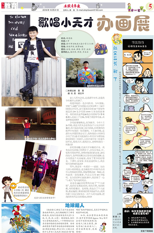 《安徽青年报·学生周刊》励志启智,开阔视野,净化心灵,陶冶情操,参与互动,集新闻性、知识性、趣味性、互动性为一体,是小学生成长的良师益友、参与互动的平台、沟通老师家长的纽带。