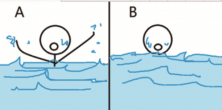 下图中,有一人在演溺水,而另一个人则真正在溺水,你能分辨得出吗? A.A在溺水 B.B在溺水 C.A和B都不是 D.A和B都在溺水