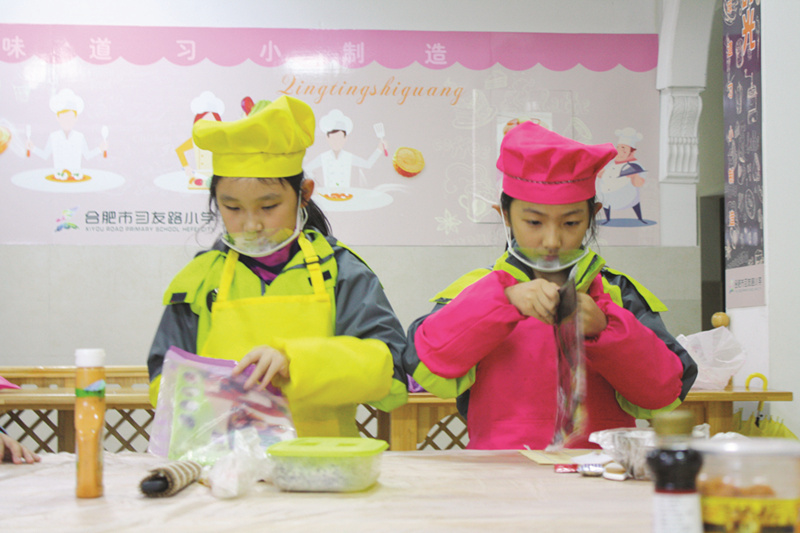 什么才能打动一个吃货的心?合肥市习友路小学一楼咖啡吧内有答案。这里,学校“庆婷时光”美食社团活动正在热闹地开展,咖吧内飘出的香味足以征服小吃货们的胃。