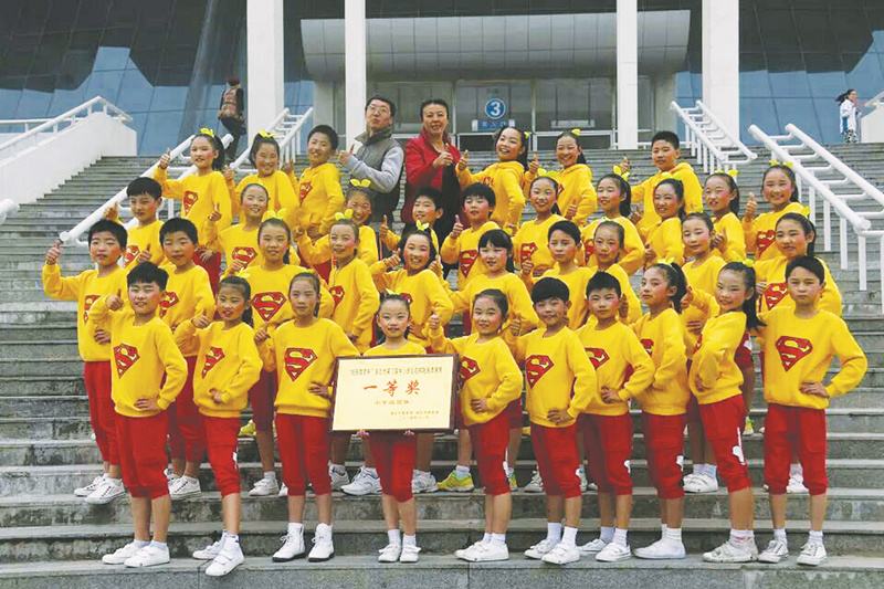 当然,荣誉的背后是艰辛的付出。早在2012年,淮北市给部分体育老师提供了一次去上海活动培训的机会,回来以后,举办了“第一届淮北市中小学跳绳比赛”。也是借着这个机遇,淮纺路小学跳绳队成立了,起名为clever花样跳绳队,clever原意为“灵动、聪明、飘逸”。虽然此时只有三十多名成员,但大家的热情都很高涨。