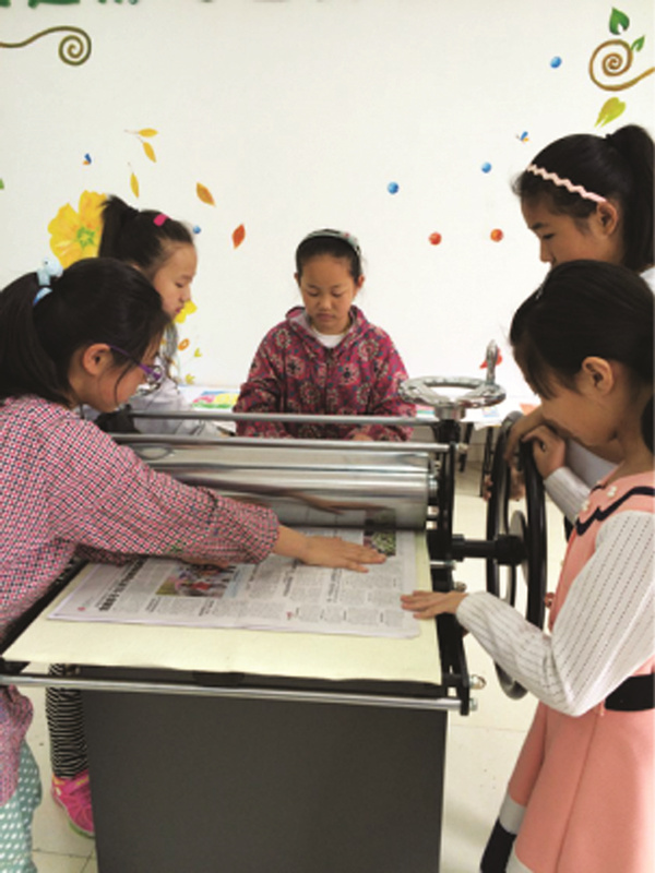 每周四下午,趣味版画班准时开课,学生们早早准备好了绘画材料。在漫长的裁剪、拼贴、雕刻后,最激动人心的时刻莫过于版画的印制了。每当孩子们小心翼翼地将底版抬到印刷机器上时,所有人都会围过来。“真漂亮!”当版画缓缓从机器里吐出来时,孩子们总会异口同声地叫起来。