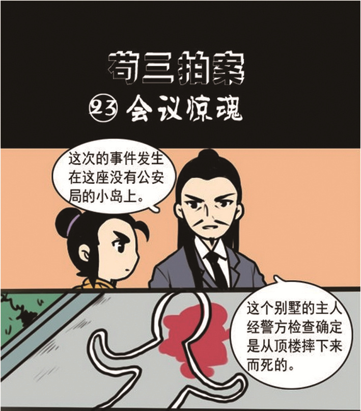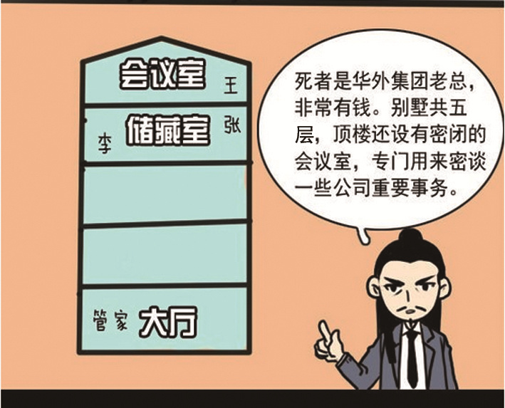 在一个小岛的别墅里,主人从顶楼摔下,而顶楼是一间密闭的会议室,这里究竟发生了什么?(题目和答案由楚天尚漫和33IQ联合出土)