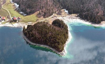 阿尔卑斯山脉有一个叫瓦尔兴的湖泊,清澈的湖水在白云间流淌,在湖泊边缘有一处被常青树覆盖的岛屿,它仿佛就是为爱而生。