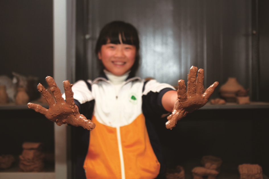 六(3)班庞宇璇也抢着介绍:“学校开了陶艺课,我可激动了,第一个报了名。现在我是拉坯最好的,但我长大并不想向这个方向发展,我还有更宏大的目标,我只是把陶艺当做提高能力的一个途径。不论我学得怎样,它都会给我的童年留下美好的回忆!”