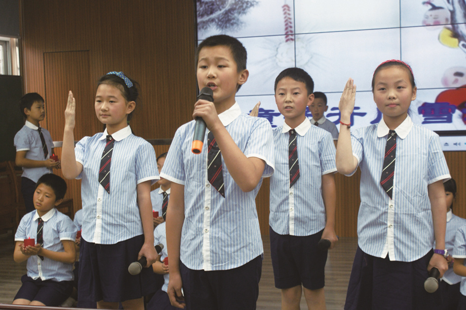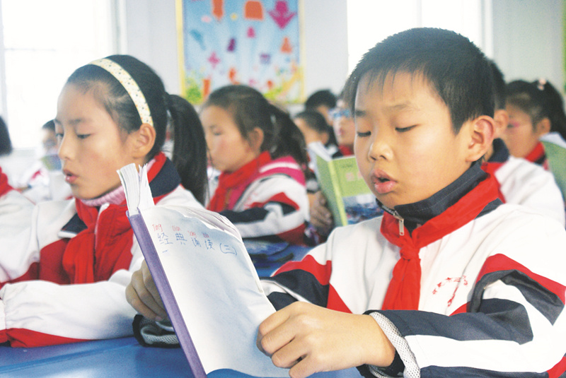 魅力社团 合肥市三十头镇中心小学诵读社团 “先天下之忧而忧,后天下之乐而乐……”周三下午,琅琅读书声响起,合肥市三十头镇中心小学经典诵读社团开始诵读啦。国学教育在学校悄然兴起,诵读经典、传承经典成为了广大师生的必修课。怎么做到的呢?随小J去体验体验学生悟感恩、习礼仪的学习成长过程吧! 我要说: 五(3)班 王欣怡:从去年开始,我每天下午都会参加诵读课,读《弟子规》、《三字经》、《论语》等国学经典。从中,我知道了什么是孝顺,现在,我每次给爸爸妈妈读书,他们都很开心。 |