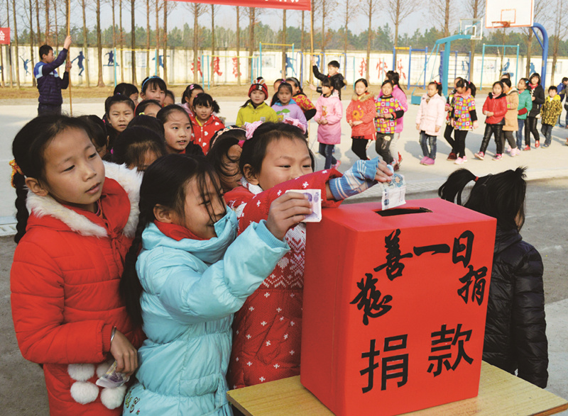 时间:12月7日 地点:含山县姚庙中心学校 图说:寒意浓浓,温暖如春。姚庙中心学校在县慈善总会的“倡议书”引导下,全校师生500余人排着队,大家慷慨解囊,你五元、我二十元,踊跃开展“慈善一日捐”活动。一张张纸币、一块块硬币,将饱含着关爱之情的善款投放到捐款箱中,爱的“接力棒”在孩子们心中传递,让寒冷的冬天充满了温暖。