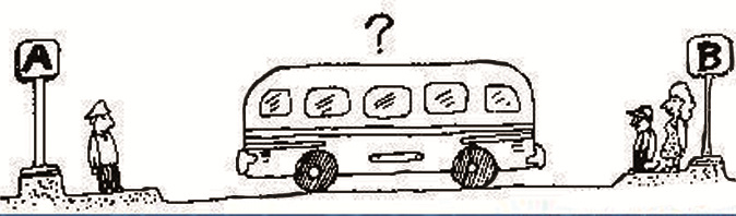 这是一道有趣的观察力测试题,许多成年人对此不知从何下手,而一些聪明的少年却轻而易举地解开了难题。图中有辆公共汽车,有A和B两个汽车站。