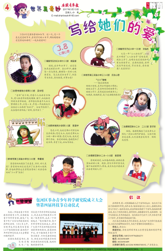 一周快报 包河区举办青少年科学研究院成立大会暨第四届科技节启动仪式 为进一步推进青少年科技创新教育工作,全面提高青少年科学素质,激发广大青少年广泛参与科技创新实践研究活动。3月1日上午,合肥市包河区教育体育局(以下简称教体局)启动青少年科学研究院成立大会暨第四届科技节。 区教体局党委书记、局长陈雪梅认为:“包河区青少年科学研究院的成立,既是我区科技教育工作的一块里程碑,也是一个新的起点。”陈雪梅介绍,青少年科学研究院的成立,将为广大青少年参加科技创新活动提供新的载体,搭建新的平台,对于激励更多青少年努力探索、不断发掘创新能力,促进全区科技教育和创新活动向纵深发展,起到积极的推动作用。