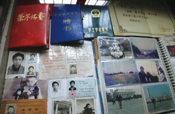 操奶奶带领学生记者们参观海子书房,柜子里面装着海子生前的一些物品。比如海子的身份证,上面写着:海子出生于1964年2月9日。一张奖状上写着:海子的《蓝星诗库:海子的诗》荣获第三届人民文学奖。另外一个展柜是海子生前用过的物品,有书包、军用水壶、一把生锈的剑等。