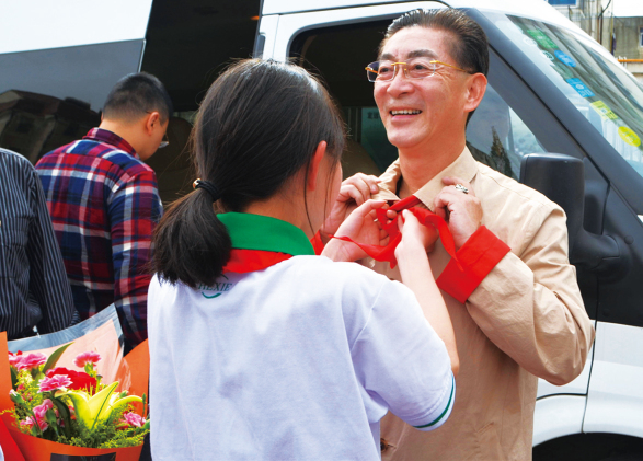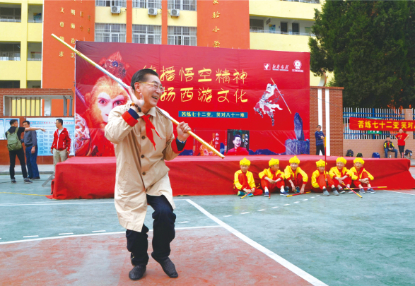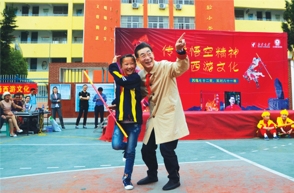 新闻风向标 学生代表为六小龄童佩戴红领巾 说起西游记,大家都知道“大圣”孙悟空,那你们知道“孙大圣”的扮演者六小龄童吗?六小龄童,本名章金莱,现为中央电视台、中国电视剧制作中心演员剧团国家一级演员。恰逢“世界读书日”,六小龄童来到了定远县实验小学,开展“传播悟空精神,弘扬西游文化”公益讲座活动,受到广大师生的热烈欢迎。
