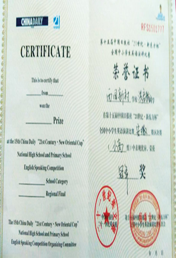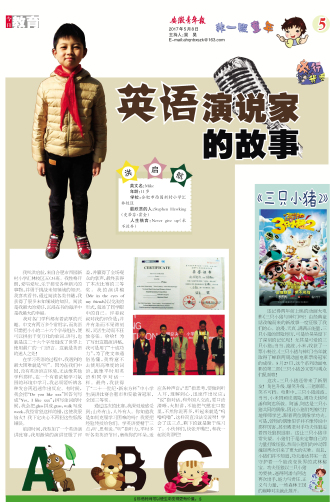 前段时间,我参加了一个英语演讲比赛,我用激情的演讲征服了评委,并赢得了全场观众的掌声,最终获得了本次比赛的三等奖。我的演讲稿《Me in the eyes of my friends》以交流的形式,叙述了同学眼中的自己。评委叔叔对我的评价是:井井有条而不呆滞刻板,灵活生动而不狂放夸张。哈哈!为了写出这篇演讲稿,我可是用了“十成功力”,为了使文章通俗易懂,我特意不去使用高难度的词语,就像平时用英语和同学对话一样。最终,我获得了“二十一世纪·新东方杯”中小学生演讲比赛合肥市和安徽省冠军,全国三等奖。