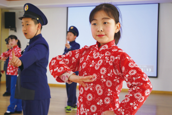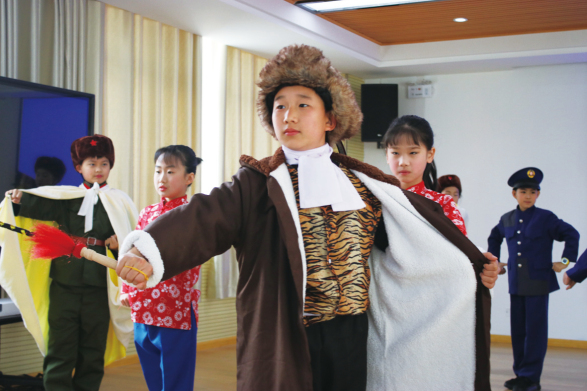 几年的时间,京剧特色班的学生们不仅能说出有关京剧知识的子丑寅卯,经典京剧唱段更是人人张口就来,字正腔圆的演唱,时常吸引了不少师生驻足观赏,使南小校园充满了京剧艺术的勃勃生机与坚强活力。通过近五年的成长,咱们的京剧特色班已从班级社团变成了校级社团,人数也经过选拔“浓缩”成了20人。说起南小京剧特色班,感受最深的就是班主任王静婷老师,与京剧院合作也是她的主意。一年级时,王老师号召全班62名同学一起学习京剧。“一开始,他们都是怯生生的,通过这几年京剧的学习,所有的同学都变得自信起来。学习京剧不仅是传承传统文化,更是对他们个性的培养。”