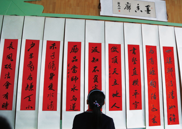 合肥市七里塘小学的书法社团成立于2014年,目前校园里的“小书法家们”有128名,将“写字育人”作为自己办学特色的韩勇校长告诉我们:把写字这种传统文化形式列入学校的教学体系中来,用满园书香去启迪学生们的七彩人生,用“小手拉大手”扩大传统文化的影响力,让学生们的成长有良好的开端。