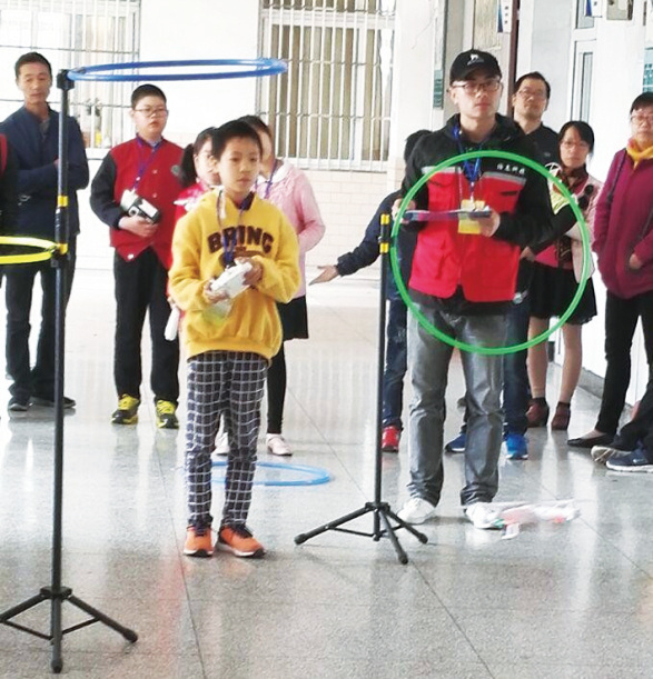 在电动遥控四轴飞行器障碍赛中,有多个圆形障碍物,每一个摆放的角度和位置均不同。选手们要用遥控器操作,让飞行器从指定位置起飞,穿过这些障碍物,同时飞行器自身还要完成空翻、自转、旋转等一系列高难度动作,最后要求平稳落到起点。