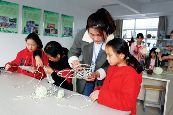 阜南,作为“中国柳编之乡”,柳编历史悠久。为使家乡这一特色工艺能够更好的传承并发扬光大,阜南一小专门成立了柳编社团。学校与家乡大型的柳编公司合作,公司给学校提供相应的草绳和铁质框架,并且派专业的柳编老师前来指导同学们。