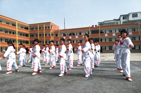 在教练、老师的带领下,同学们学到了跆拳道的精髓——礼仪。六(2)班李阔说,练跆拳道能够强身健体,让他小小个子爆发大能量。跆拳道不仅是男生的最爱,女孩子更是社团里的一抹亮色。五(1)班杨晓璐觉得,女生练跆拳道非常帅气,虽然很累,但是坚持就是胜利。正如校长郭爱萍所说,别看三小校园面积小,却是阜南县唯一一所具有跆拳道社团的学校,社团礼仪感强,带动了整体学生风貌转变。
