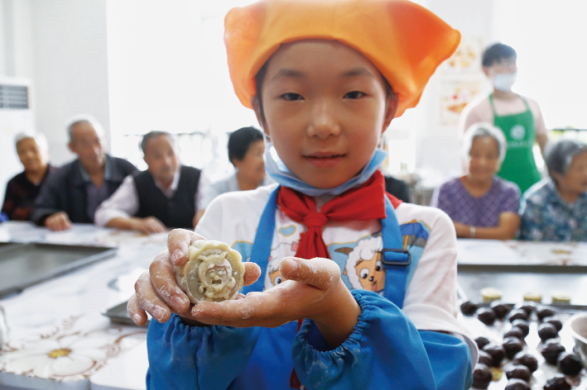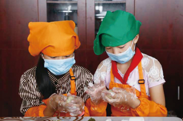 学校为了培养同学们的课外兴趣、普及食品文化、提高实际动手能力,特为同学们成立了烘焙社团。每周二、周六两次上课的时间,同学们换好衣服,戴好围裙、帽子、口罩,洗干净手,就开始学习烤饼干、面包和蛋糕。中秋节时,在学校的组织下同学们还与社区志愿者共同DIY,亲手做月饼献爱心。在老师的帮助下,同学们和面、擀压、刷蛋黄,很快一盘盘泛着金黄色光泽的鲜肉月饼就出炉啦!社区的老人们吃着同学们亲手做的月饼,眼里心里都乐开了花。