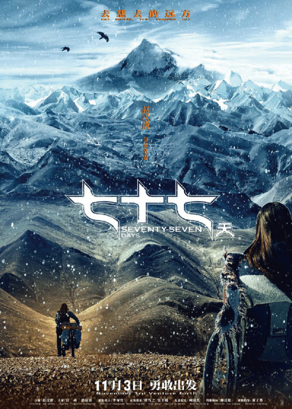 《七十七天》是中国首部户外题材3D探险剧情片,以探险作家杨柳松77天孤身穿越羌塘无人区的真实事迹为蓝本创作。 影片开拍地选在了荒凉、寂寥却又别样美丽的可可西里,导演和全体主创人员将面临在极端环境下拍摄的重重挑战,而主演赵毅更是身负重任,不仅要挑战多变险阻的气候、地形,还要和各类藏区的野生动物做一次“亲密接触”。 影片在节奏、画面、张力上会给观众强烈的视觉冲击,让观众跟随主人公经历一场无与伦比的探险之旅。喜欢探险的同学们注意了,该影片于2017年11月3日在中国内地上映。