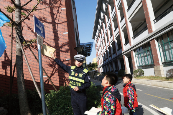 学生记者们的问题源源不断,超速怎么办?遇到路怒症怎么办?交通信号灯为什么每个路口时间长短不一?交警叔叔都耐心地一一解答了。学生记者们今天不仅认识了校内的交通标志,学到了基本的指挥手势,也熟悉了解了一些基本交通规则。这一堂“交通”课,收获满满。