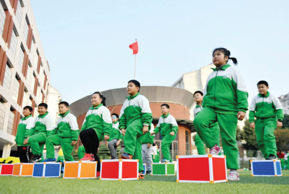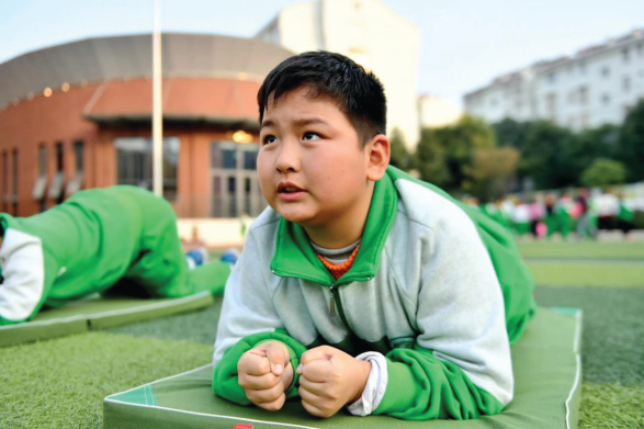 “把肚子都挺起来,身体放平!”“仰卧卷腹再坚持做一组,你们可以的!”咦?听起来是不是很像健身房中的场景?其实,这是合肥市临泉路第二小学的“小胖墩”们正在操场上进行特别的瘦身训练呢!