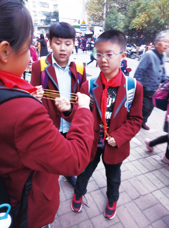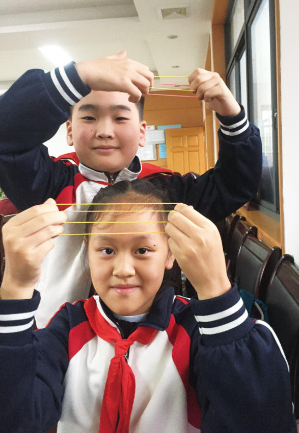 “我两只手撑着两根皮筋,同学,你可以选倒数第二根,弹一下试试。”11月13日下午,合肥市安庆路第三小学魔术社团教室里,社团成员正在表演皮筋魔术。