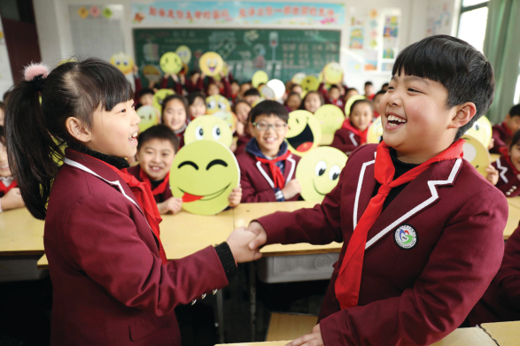 郭桐羽:我做的是一个调皮的笑脸,这个笑让人一看到就感到特别开心,这也是我的愿望。我还代表我们三(4)班在学校升旗台上做了国旗下的讲话。我提出倡议:给你身边的每一个人多些微笑,你就会把快乐带给更多的人,同时倡议把问候送给自己的老师、亲人、同学,感谢他们对我的关心和爱。