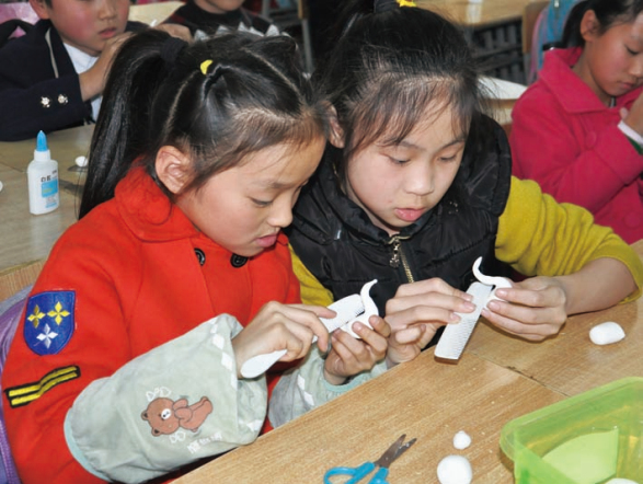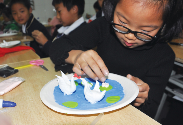 周恬晨:我觉得面塑很有意思,把一团面在手里捏一捏、揉一揉,一个好玩的东西就完成了。而且,我们还可以自己发挥想象力,捏一些奇奇怪怪的东西。面塑老师很亲切,面对我们这群第一次接触面塑的学生,她不厌其烦地教我们。刚开始学习面塑的时候,我们都是按老师说的一步一步做,后来,我们渐渐掌握了一些方法,熟能生巧,开始自己做了。
