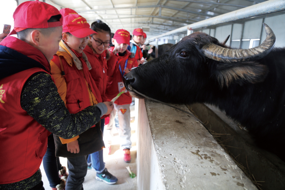 在养殖区,学生记者们与牛羊兔,还有孔雀、珍珠鸡等家禽家畜,来了一次亲密接触。费湘虞、崇时瑞等人,纷纷抓起篓筐里的菜叶、玉米粒,给它们喂食。“同学们,你们知道哪种孔雀开屏更漂亮吗?是雄孔雀还是雌孔雀呢?”听完讲解员姐姐的提问,同学们争相抢答起来。没错,是雄孔雀,而且每一只雄孔雀身边,要有2—4只雌孔雀。