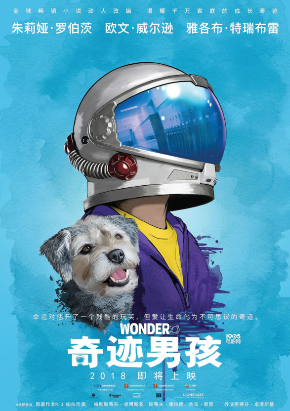 电影《奇迹男孩》改编自全球畅销小说《奇迹》,讲述了一个温暖千万家庭的成长故事。10 岁的奥吉天生脸部畸形,此前一直在家中和妈妈自学。当他小学五年级时,奥吉进入父母为他精心挑选的学校上学。 在这里,奥吉将与校长、老师以及性格迥异的同学相处,他不寻常的外表让他成为同学们讨论的焦点,并终日受到嘲笑和排斥,就连好不容易交到的新朋友也似乎不太值得信任。幸运的是,在成长过程中,奥吉的父母、姐姐一直是他最坚强的后盾,在他们的支持与关爱下,奥吉凭借自身的勇气、善良、聪敏影响激励了许多身边的人,并收获了友谊、尊重与爱,最终成长为大家心目中的不可思议的“奇迹”。 该影片将于 2018年1月19日在中国大陆上映。