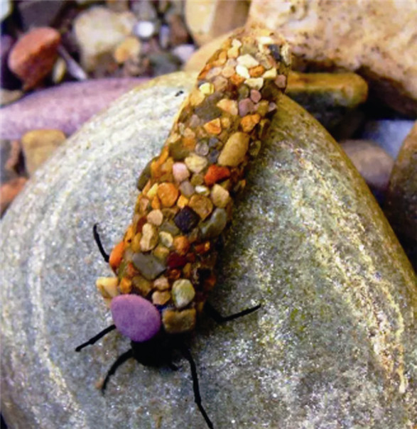 石蚕把自己的房子背在背上,它们就地取材,制造个移动式的小房屋。建筑材料也是五花八门,植物茎叶、砂砾、蜗牛壳等等,全都能派上用场,简直就是信手拈来,来者不拒。而且随着身体的长大,它会不停地扩建自己的小房子。