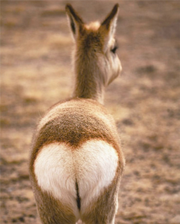高原地区紫外线强烈,有一种说法是,当阳光照射在藏原羚臀部的白色心形时,会形成刺眼的反射光。而藏原羚在躲避天敌追赶时,会快速奔跑,并且喜欢不定时地向上跳跃。就在这奔跑和跳跃的过程中,心形图案就像一面持续晃动的镜子,晃花捕食者的眼睛。不过小米姐姐发现,关于这白色心形图案,还有另外一个说法,那就是用来与同类传递信息。