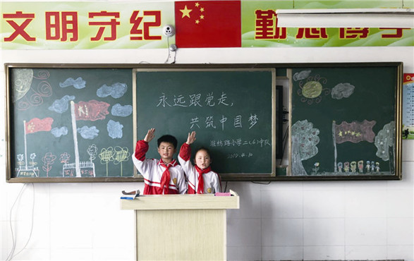 为贯彻落实党的十九大精神,认真践行社会主义核心价值观。近日,相山区淮纺路小学开展了“永远跟党走 共筑中国梦”主题队会。