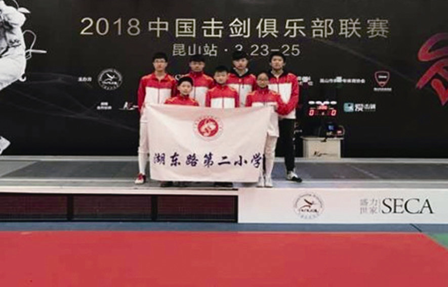 湖东路第二小学是马鞍山市唯一一所开展击剑项目专业培训的小学。击剑社团开办至今,一直秉承着“快乐击剑,快乐成长”“铸剑育人”的理念,在校内少年宫积极开展击剑社团活动,宣传击剑项目,并在学校的组织下开展击剑课进课堂活动,让更多的同学了解击剑,认识击剑。击剑社团拥有专业的击剑设备和优秀的师资团队。击剑社团为了达到更好的教学质量,在场馆内配备了专业、进口的专业比赛器材、专业性辅助训练器材。教练团队全部由安徽省击剑队专业退役运动员组成。专业的器材、专业的教练,祝愿这里的同学们都能实现心中的理想!