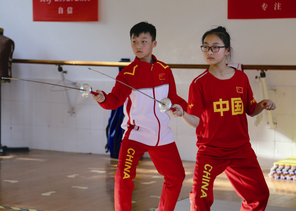 在湖东路二小的击剑课堂里,有着一群小击剑手,他们穿着专业的击剑运动服,手持佩剑,右腿往前一步,左腿跟进一步,然后左腿蹬腿,前腿甩出去。在这里,一年级的朱峰德同学是年纪最小的击剑学员。别看他小,他已经学习击剑运动2年了。对于击剑运动技巧的掌握比有些大人还要好,小小的身体有着大大的能量。他告诉小编,他也想像哥哥姐姐们那样参加比赛为国争光。所以他报名学习击剑运动。刘诒达同学上5年级了,在3年级时参加市级比赛获得了铜牌,聪明的他不仅击剑学得好,学习也一直不错。他告诉我们,“击剑对专注度要求很高,有助于日常的学习。未来我会击剑、学习两不误。”