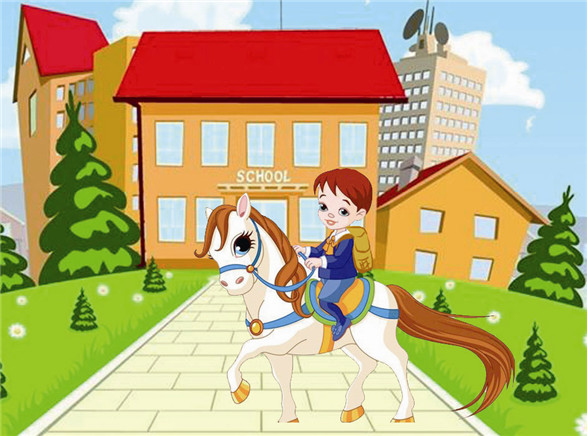 酷!骑马上下学