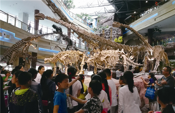 “这只恐龙的化石怎么这么长啊,我的手机都拍不完整了,我猜这个一定是霸王龙。大家快来看看,这里有黄山龙。”在恐龙厅里,同学们像撒欢的小鸟,探寻着每种恐龙的特征。这里展示了多具恐龙化石,有“斧溪峨嵋龙、天府峨嵋龙、步氏克氏龙、董氏中华盗龙、大水沟吉兰泰龙、黄山龙等我们没有听过名称的恐龙。”每一具化石代表着一个族群的兴衰演变,开拓着同学们对那个未知时代的探求渴望。同学们的足迹遍布地球厅、生命演化厅、恐龙厅、矿物岩石厅以及资源与环境厅,最后迎来我们本次活动的重头戏,“巢湖龙说”科普微视频课程开课仪式。