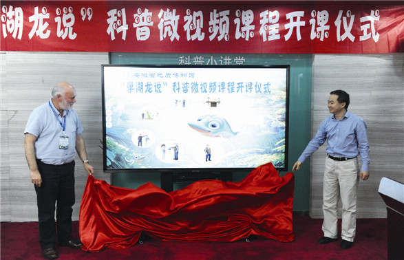 查辉鹏部长,David A.T. Harper主席共同为“巢湖龙说”科普微视频课程揭幕